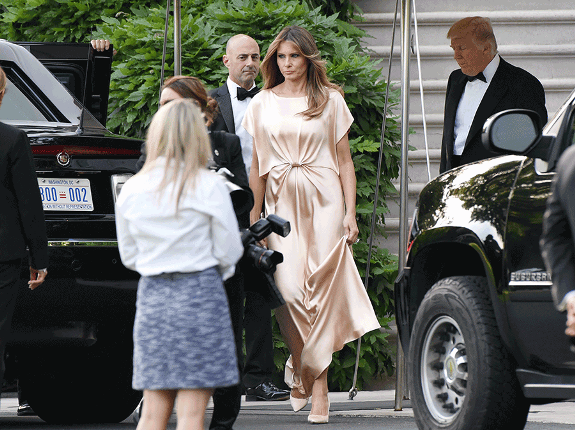 The US president was spotted walking behind his wife, Melania Trump, after they both attended a reception on June 4 in Washington D.C. Melania looked pissed as she walked in front of her husband. See more photos after the cut…
