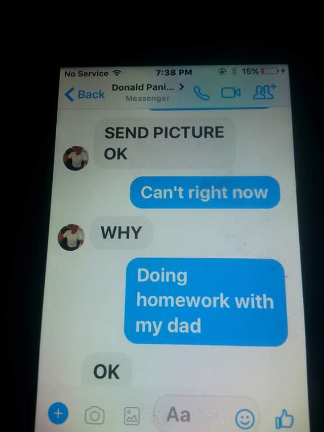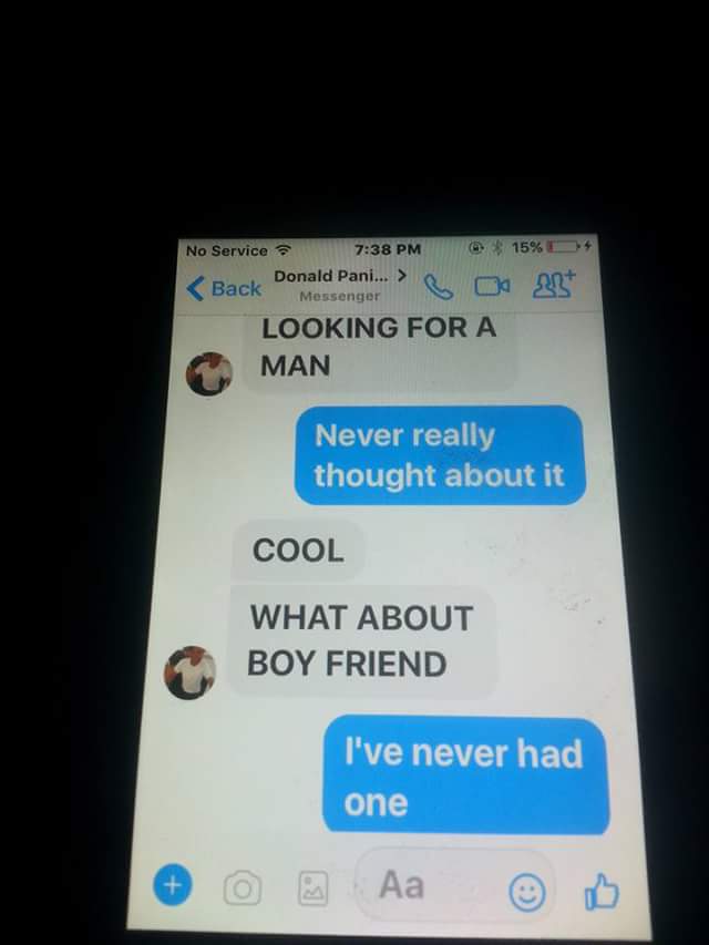 “Was going through my daughters phone and came across a message request from donald paninski on fb messenger. She had not answered him because she knows she is not allowed to converse with unknowns unless i approve. So i messaged him from her account. Please help me make this guy famous so that he will not be able to target another child. #checkyourkidsphones.”