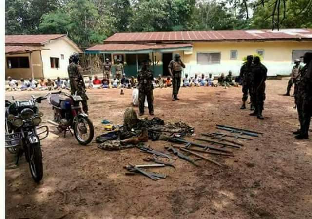 They were caught with full military fatigues and weapons like cutlasses and what appeared to be locally-made riffles.